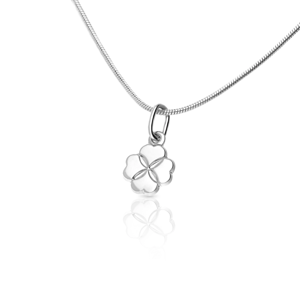 Ručne gravírovaný prívesok v tvare štvorlístka v bielom zlate Au 585/000, priemerná váha 0,59 gr.